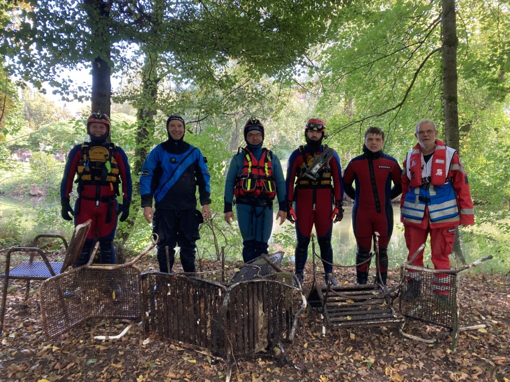 Den vergangenen Feiertag nutzten wir für eine kleine Übung mit unseren Tauchern und Wasserrettern. Dabei konnten wir auch einige Stühle aus der Saale bergen.